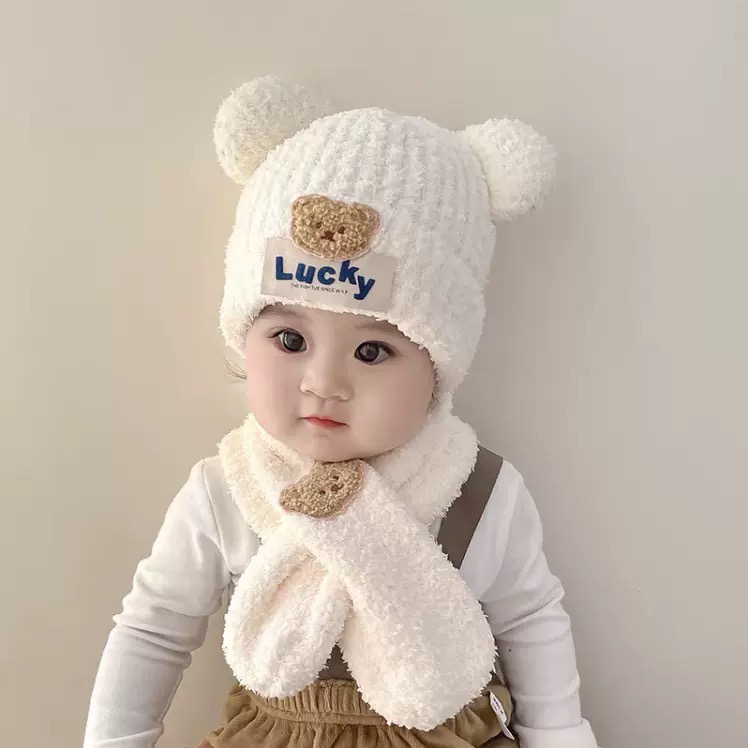 2分鐘前嬰兒帽子秋冬季可愛小熊寶寶毛絨護耳帽圍巾套裝保暖男女童套頭帽 - 商家推薦95%客戶選擇2入組NT$1199