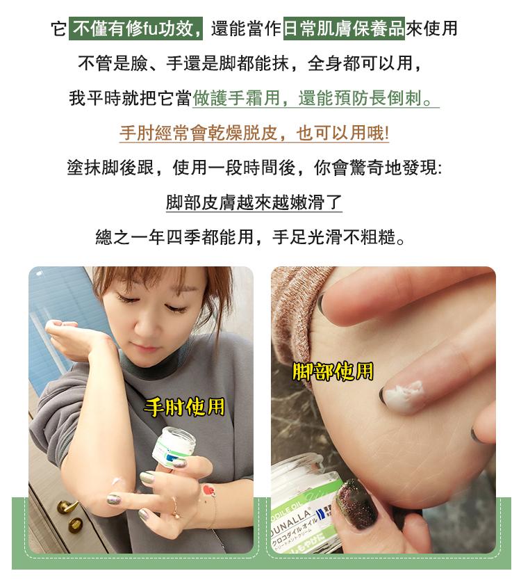 5分鐘前【秋冬保濕套裝】日本DUNALLA鱷魚油滋潤護理霜 修復手足 防乾裂 解決皮膚乾燥粗糙 幹癢隱痛的問題 讓肌膚滋潤保濕 清爽不油 - 【加200塊】6組手膜+6組腳膜+2組DUNALLA鱷魚油 僅需--NT$ 1198